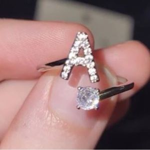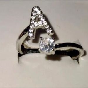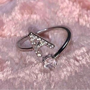 🤩 Letter “A” Cubic Zircon Silvertone Adjustable Ring NWT