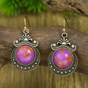 Any 2/$20! GOLD Purple Marble Boho Glam Drop Earrings