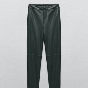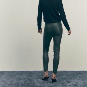 ZARA Women's Faux Leather Skinny Leggings(Dark Green, US M, L, XL/EUR M, L, XL)