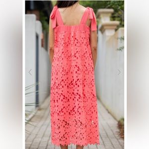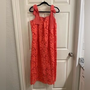 Renee C Coral Pink Lace Midi Tie-Strap Dress Size L