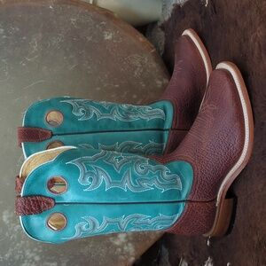 Excellent pre-owned condition. Worn only once, to prom. Would also make a gorgeous bridal footwear option for a country wedding. Bit of dirt caught in tiny grooves on heels caps. Very light wear on leather soles, no visible wearing down or drag on heel caps. These boots are still very much like new. Sprayed with quality leather protector prior to wearing. Do not come in original Corral boot box.