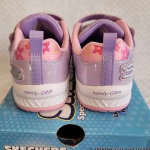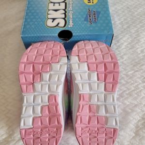Brand new Skerchers girl toodler Little Starz. Light weight and flexible, easy on and off, fuller toe box, cushioned support. plus, it has a comfy grip. Very cute color will be good for your little one!