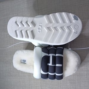 UGG Maxi Slide Logo Women's Slides Slippers White & Black UGG Logo Size 7 New