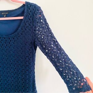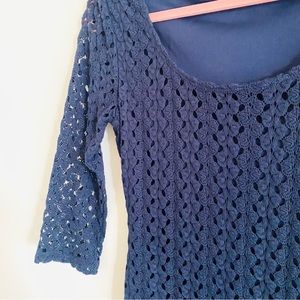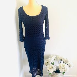 💕 Blue Knit Long Sleeves MIDI Dress SZ S