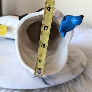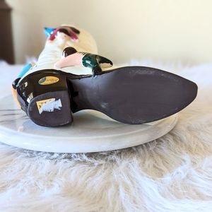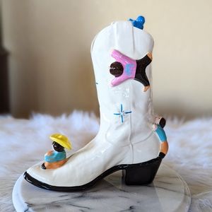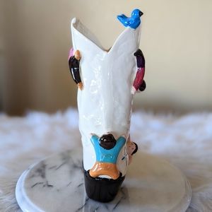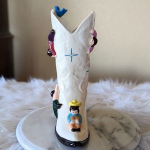 Storyteller Arts Hand Painted Figural Ceramic Cowboy Boot Bird Vase 11 in