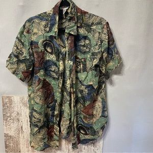 Vintage Metro Express Silk Short Sleeved Button Down print shirt size large