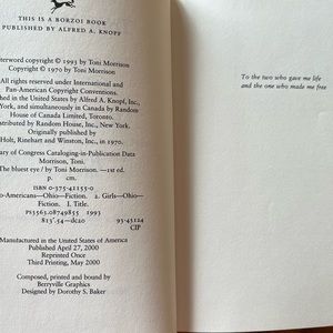 The Bluest Eye Toni Morrison (winner of the Nobel Prize in Literature) Hardback 2000