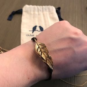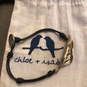 Chloe and Isabel sculpted feather leather bracelet 6.75-7.5” adjustable length (lightly worn) and sculpted feather pendant necklace approx 16” in length. (Also lightly worn)