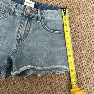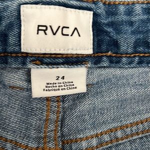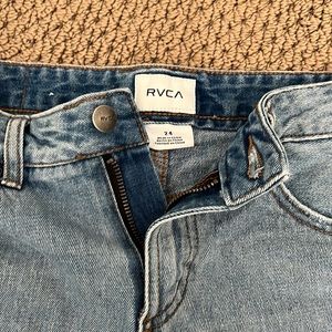RVCA light denim distressed shorts. Size 24 two pockets in front two pockets in back super cute worn two times. Excellent condition non-smoking home.