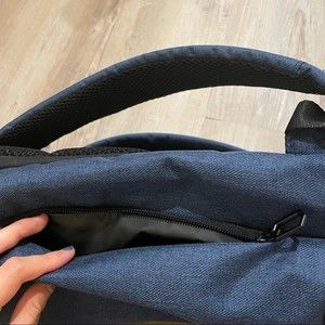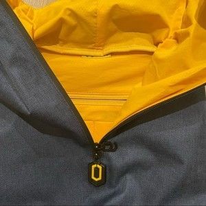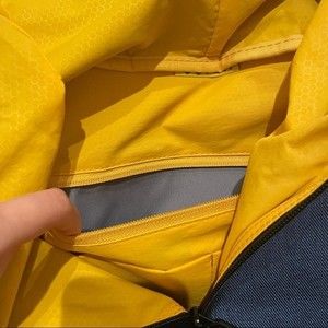 Xiaomi Go Fun navy blue and yellow classic business hiking backpack. Brand new, never used. Has adjustable straps and a secret compartment for a wallet or other personal belongings.