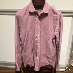 J Crew Thompson large 16/16 1/2 80s two ply cotton burgundy/white dress shirt.
