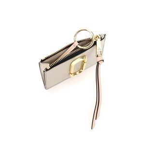 Marc Jacobs mini wallet in two-tone coated Saffiano leather, embellished with gold-tone metal Double J logo application. It features center gusset pocket with zip, contrasting leather zip puller and interior key ring. Open flat pocket, three card slots and contrasting ID window at back. Gold-finish metalware. Material: 100% pelle. SKU: 231445APG000008-088-parent. Bag length: 0. Bag height: 0. Bag depth: 0.