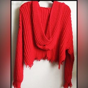 NWT WILDFOX red cropped hooded sweater. So unique and gorgeous sweater- not many around- and such a vibrant red color.