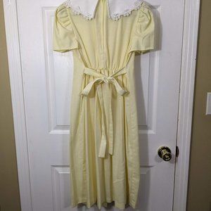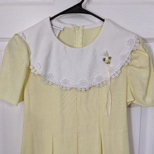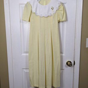 Bonnie Jean Vintage Soft Yellow Bib Lace Trim Collar Maxi Girl's Dress - size 14
