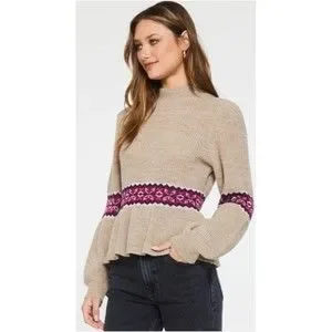 DEAR JOHN Felicia Peplum Tan Long Sleeve Fall Sweater