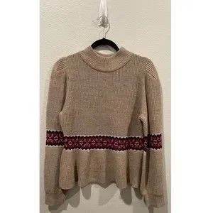 DEAR JOHN Felicia Peplum Tan Long Sleeve Fall Sweater. Size L