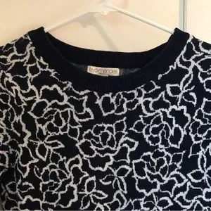 Eva Mendes by NEW YORK & COMPANY Floral Navy Blue Pull Over Sweater