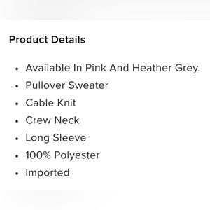 Brand New! Heather Grey semi-cropped cable knit sweater. Super cute!