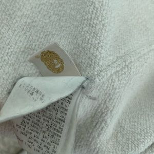 Pre owned. Some stains on sleeves but overall condition is good. Fits size S-M( lots of dry time)