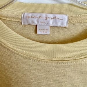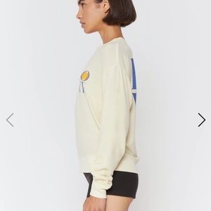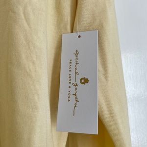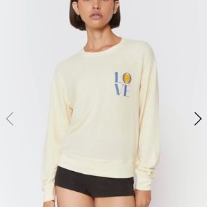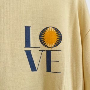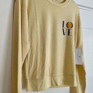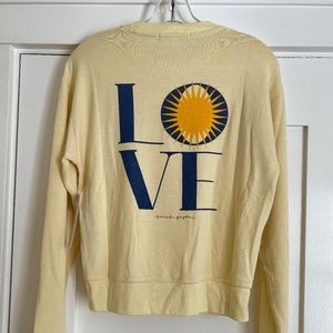 Savasana Sweatshirt from Spiritual Gangster in limoncello, size small, with blue „LOVE“ print.