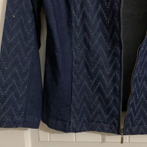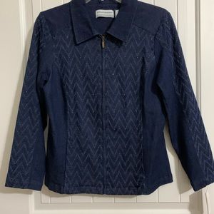 Alfred Dunner Blue denim jean jacket stretch chevron herringbone 6P nwt