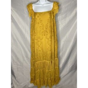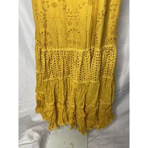 New with tags. size 12 (runs large). Pullover style, lined, cotton. Lovely tiered embroidery dress in a golden yellow color. Pockets!