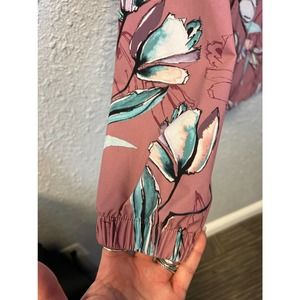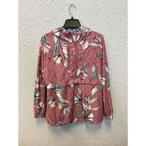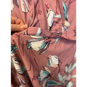 CALIA Anywhere Printed Woven Pullover Hoodie Floral Windbreaker Cinched Waist M