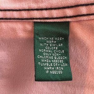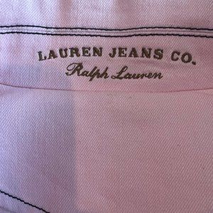 Ralph Lauren Jeans Pink Denim Double Breasted Belted Jacket, Size Medium Pink denim with black stitching, belt is removable. Very flattering coat and great quality! 98% Cotton 2% Elastane Machine Wash Warm