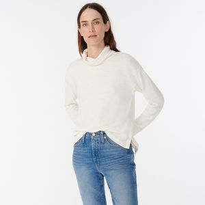 Newsworthy knit alert! This relaxed sweater is crafted from a smooth cotton blend with just the right amount of slouch. An oversized fit and cute mockneck make it front-page material. By buying cotton products from J.Crew, you're supporting more responsibly grown cotton through the Better Cotton Initiative.