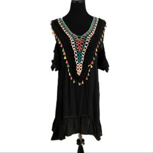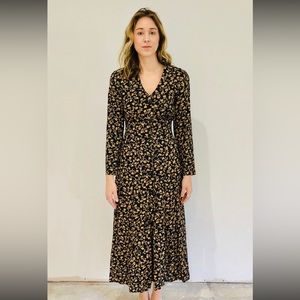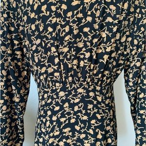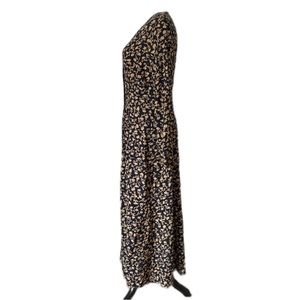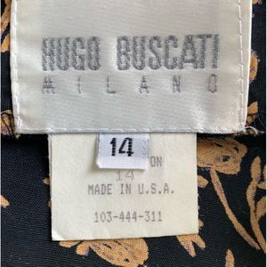 Vintage Hugo Buscati floral print MIDI dress in black and tan. Size 14* ( See Measurements before ordering).