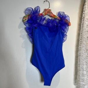 Free People Haute Wired Bodysuit Ruffles Tulle Trim Canyon Iris