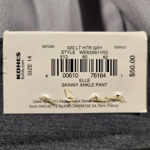 NWT*Elle Gray Slacks*Womens 14*Skinny Ankle*Mid Rise