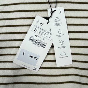 Zara T Shirt Short Sleeve Striped Olive Green Cream Crew Neck Ringer Mens S NWT