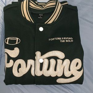 Green and white Varsity Jacket size L, never worn