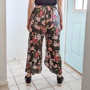 Xhilaration Small Split Leg Floral Olive High Rise Pants