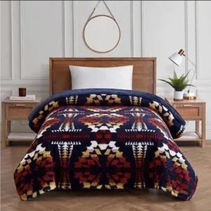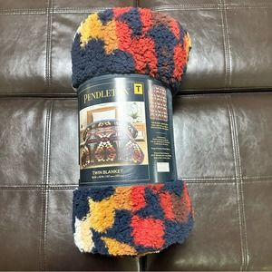 Pendleton Sherpa Fleece Blanket Bedding Bedroom Blue Aztec Throw Twin nwt