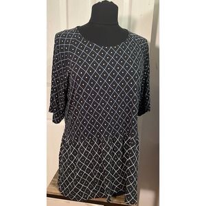 Gudrun Sjoden Geometric 1/2 Sleeve Peplum Soft Modal Top M