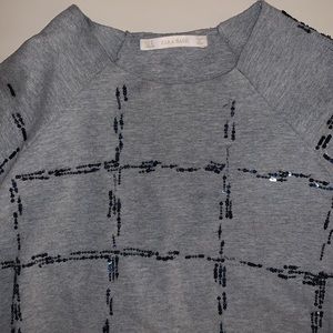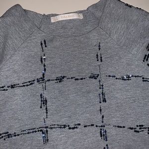 Zara Basic Gray with Black Sequins Quarters Sleeve Shirt Size Small