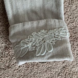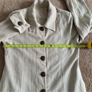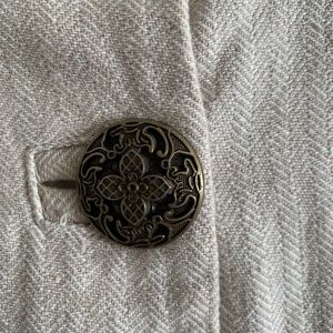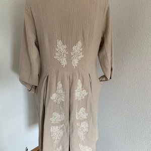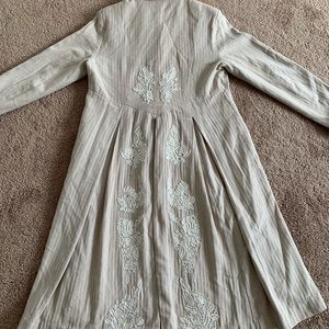 Soft Surroundings floral appliquéd topper trench jacket - coat - Embroidery details on the back and on coat’s cuffs - beautiful antique-looking big buttons - fully lined - side pockets- button down front - shell 100% cotton - minor discoloration under one of the buttons- barely noticeable/ see pics / ask questions.