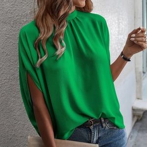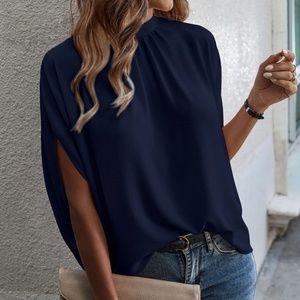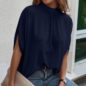 Classic Royal Blue Batwing Sleeve Loose Fit Blouse