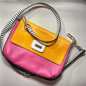 Flattering v-neck and bias stripes on the front, this 100% cotton knit tank will breathe. No size tag; please see measurements below. EUC.