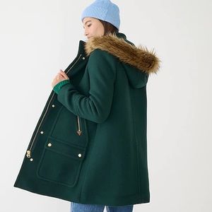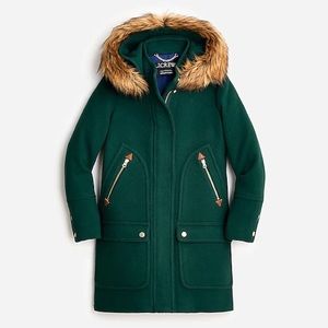 Hi, up for sale is a brand new with tags this years J Crew Parka Coat in the gorgeous Dark Forest Green. Will ship in all the original J Crew packaging including the box. Size 2 Tall. The tall gives 1” extra length perfect for a little extra warmth. Removal snap button faux fir so you can mix up your looks.