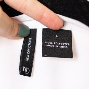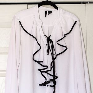 New Directions | White and Black Ruffle Blouse with front tie.