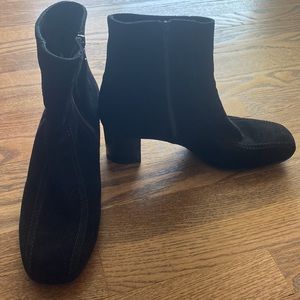La Canadienne suede waterproof boots look equally great with jeans or skirts. EUC with no visible scuffs or flaws. Approximate measurements: 2-1/2” heel and 6” shaft with 10-1/2” calf circumference.