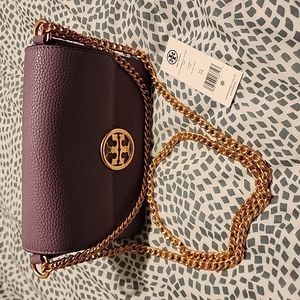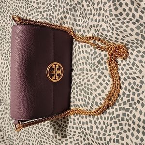 Tory Burch Olivia Pebbled Purple Leather Bag