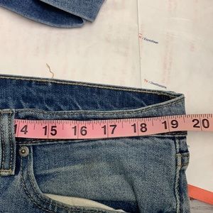 @jmgilboy good morning, 19 1/2” on a flat lay, they feel like regular Levi’s, so a little soft, picture posted, thank you