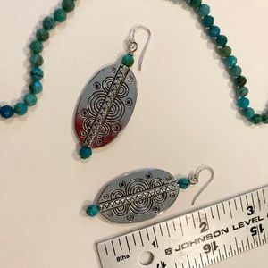 Genuine Turquoise Beads, with oblong Southwestern Oblong Silver Beads. Super Cute. Sterling Silver fishhook posts. Yay!