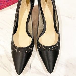 Tory Burch Glenna Pump Lace/Satin Black Size 10.5