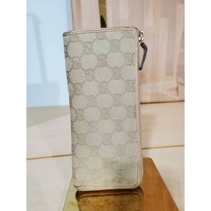 Authentic GUCCI Calfskin Monogram Zip Around Wallet Tan