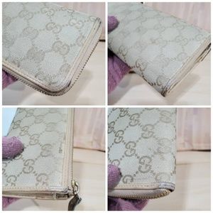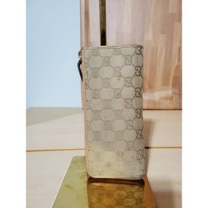 This authentic GUCCI Calfskin Monogram Zip Around Wallet Tan is in it's pre-owned good condition. The exterior canvas is clean and beautiful. Interior is clean.